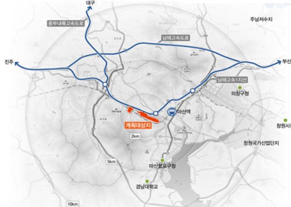 시는 공동주택 5930세대(분양 3,650 임대 2,280) 등 주거용지 29만1196㎡(41%)와 도로, 공원 등 기반시설용지 41만2758㎡(59%)를 비롯해 창원지방법원 마산지원, 창원검찰청 마산지청, 마산회원구청 등 13개 공공기관이 들어설 부지를 조성한다는 계획이다.