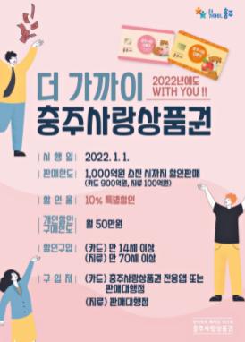 충주시는 31일 소상공인과 시민의 상생 경제 및 지역 상권 활성화를 위한 충주사랑상품권을 2022년에도 지속 발행한다고 밝혔다.