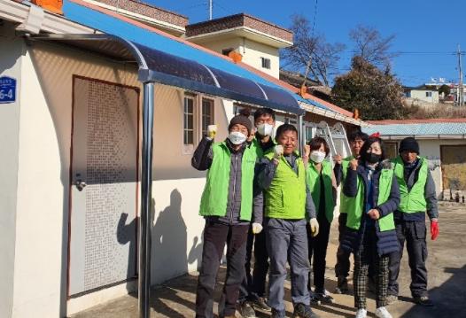 이번 봉사활동은 방문요양서비스를 받고 있던 어르신의 집 현관 출입문이 비바람에 노출돼 불편한 상황임을 평소 느껴왔던 요양보호사의 안타까운 마음을 전해들은 지역사회보장협의체의 도움으로 캐노피 시설을 설치하게 됐다.