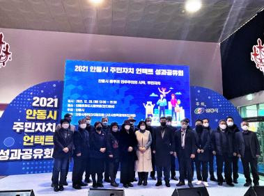 안동시는 코로나19로 어려운 상황에서도 다양한 주민자치활동으로 훌륭한 성과를 거둔 24개 읍면동 주민자치(위원)회 자치위원의 열정과 참여에 대한 노고를 격려하기 위해 지난 28일 문화플랫폼 모디684(구 안동역)에서 ‘주민자치 언택트(Untact) 성과 공유회’를 개최했다.