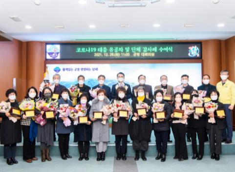 남해군 새마을부녀회는 자가격리자들을 위한 ‘사랑의 밑반찬 나눔’ 봉사활동과 사회적거리두기 캠페인 등을 실시했고, 한국생활개선남해군협의회에서는 취약계층을 위한 면마스크를 제작하고 기부했으며, 21명의 개인 수상자들도 방역활동 참여, 어르신 백신접종 현장지원, 성금 기탁 등 다양한 분야에서 코로나19를 극복하기 위한 적극적인 활동을 펼쳤다.
