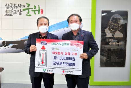 군위군은 지난 30일 군위로타리클럽(회장 홍희동)이 희망2022나눔캠페인 이웃돕기 성금으로 100만원을 기부했다고 전했다.