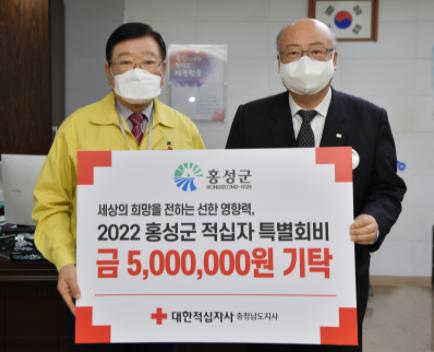 홍성군은 지난 28일 군수실에서 대한적십자사 충남지사에 ‘2022년도 적십자 희망 나눔 특별회비’ 500만 원을 전달했다.