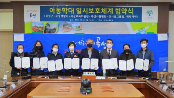 곡성군이 곡성경찰서, 곡성교육지원청, 곡성사랑병원, 큰사랑그룹홈, 위탁가정 4가구와 함께 학대 아동 일시 보호체계 구축 협약을 체결했다.