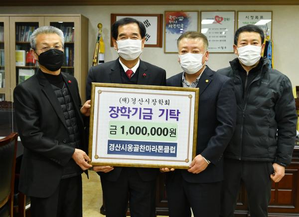 경산시옹골찬마라톤클럽이 30일 경산시장학회에 1백만 원의 장학금을 기탁하였다.