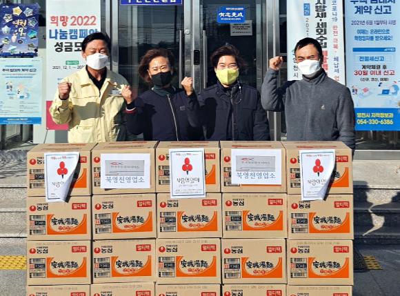 이날 기탁된 라면은 한국도로공사 북영천 영업소 직원 14명이 어려운 이웃을 돕기 위한 바자회를 올해 처음으로 개최하여 그 수익금으로 라면을 구입해 전달한 것이다.