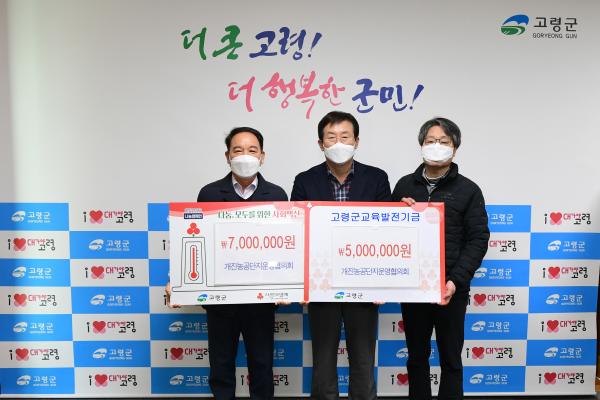 2021년의 마지막 날, 개진농공단지운영협의회에서 고령군청을 방문하여 교육발전기금 500만원과 이웃돕기성금 700만원을 기탁하였다.