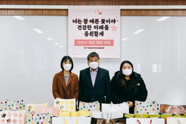 무안군 청년 여성 모임은 지난 30일 연말연시를 맞아 관내 저소득 취약계층에게 전달해 달라며 몽탄면지역사회보장협의체에 여성 위생물품 20박스를 기탁했다고 밝혔다.