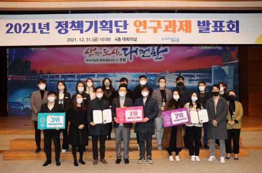한편 정책기획단은 포항시 공무원으로 구성된 정책 아이디어 연구 팀이며 지난 2월 공개모집 결과 5개팀 21명이 신청했고, 이날 최종발표회를 거쳐 2021년 활동을 마무리했다.