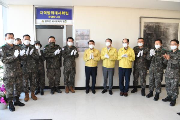 31일 완주군에 따르면 제35보병사단 106여단 2대대장은 이날 완주군청 6층 완주군 예비군지역대에서 박성일 군수와 2대대장 등 군 관계자들이 참석한 가운데 창설식과 함께 현판식을 열었다.