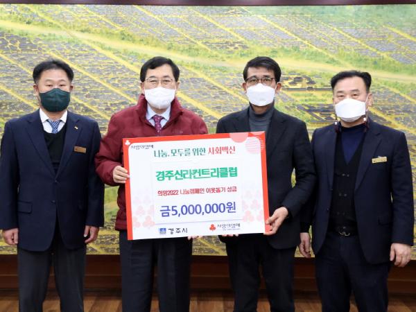 경주신라컨트리클럽에서 지난달 30일 희망2022 나눔캠페인 성금 5백만 원을 경주시에 기탁했다.