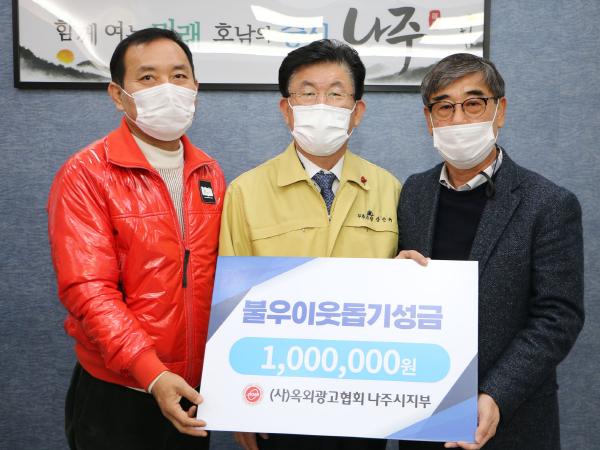 나주시는 전남옥외광고협회 나주시지부에서 새해 이웃돕기 성금 100만원을 기탁했다고 2일 밝혔다.