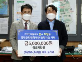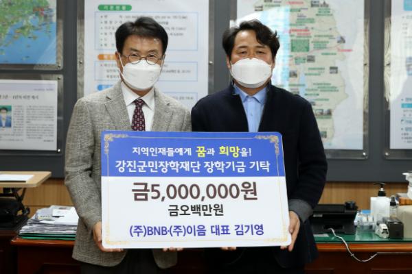 강진군민장학재단은 지난 28일 ㈜BNB, ㈜이음에서 5백만원, 대평건업㈜에서 2백만 원의 장학금을 기탁했다고 밝혔다.