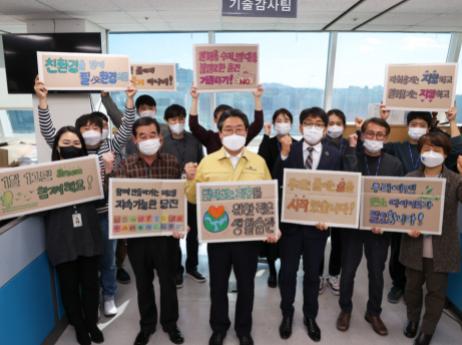 우선 청사 내 일회용품 반입 금지와 청사 주변 배달음식점의 다회용기 사용 권장 등 공직자와 시민이 함께 실천하는 분위기 조성에 적극 나섰으며 ▲일회용품 없는 회의 ▲종이 없는 위촉식(위촉장 전자메일로 전달하기) ▲생활 속 나만의 텀블러 생활화 등 부서별 실천과제를 정해 탄소 중립 실현을 위한 노력을 기울였다.