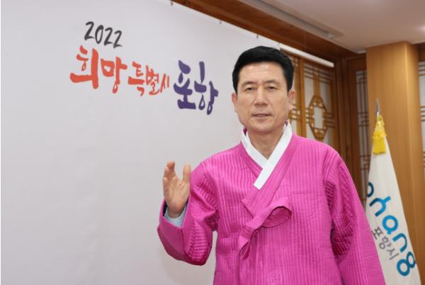 존경하는 시민 여러분! 코로나19를 슬기롭게 극복해나가는 가운데 지역경제 활성화와 포스트 코로나 시대를 위한 준비에도 많은 힘을 보태주고 계신 시민 여러분께 깊은 감사의 말씀을 드립니다. 2022년에는 “더 큰 포항”을 목표로 미래성장동력 확충은 물론, 경제, 환경, 복지 등 시민생활의 모든 분야에서 시민 여러분의 희망을 이어가는 “희망특별시 포항”으로 도약하는데 최선을 다하겠습니다.