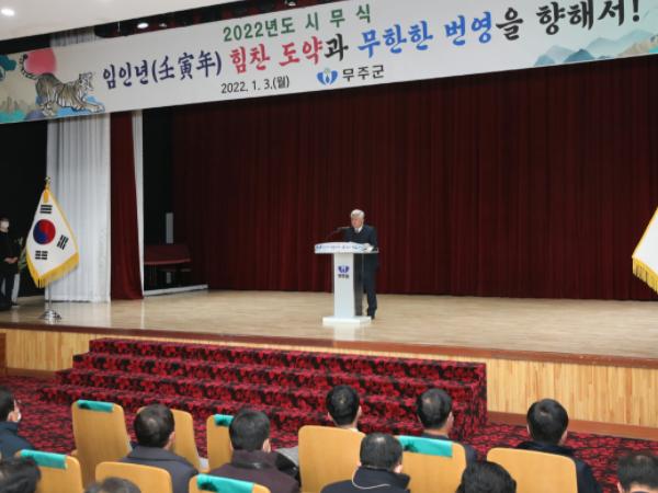 무주군은 3일 오전 전통생활문화체험관에서 2022년도 시무식을 갖고 새해 본격 업무에 돌입했다고 밝혔다.