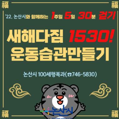 논산시가 1월 3일부터 3월 31일까지 논산시 모바일 앱 ‘워크온’을 통한 ‘논산시와 함께하는 2022년 1530! 걷기 습관 만들기’행사를 진행한다.