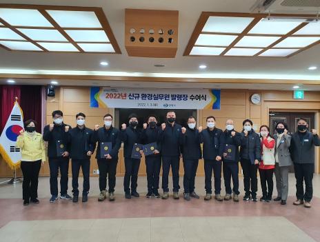 이날 발령장 수여에 이어 27일부터 시행하는 중대재해처벌법 관련 사항과 환경미화 업무 수행 중 자주 발생하는 사고 사례에 대한 예방법 소개 등 안전교육을 병행 실시했다.