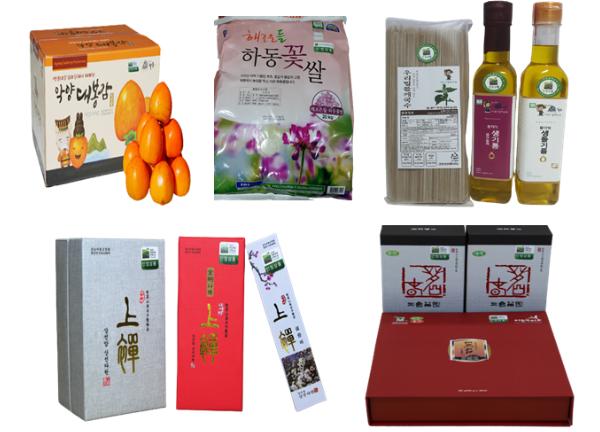 ‘해조은들 하동꽃쌀’은 고품질 브랜드 쌀로 밥맛 좋기로 유명하며, ‘상선암 우전’은 보성 스님이 직접 덖은 수제차로 제초제나 농약을 전혀 사용하지 않아 부드럽기로 유명하다.