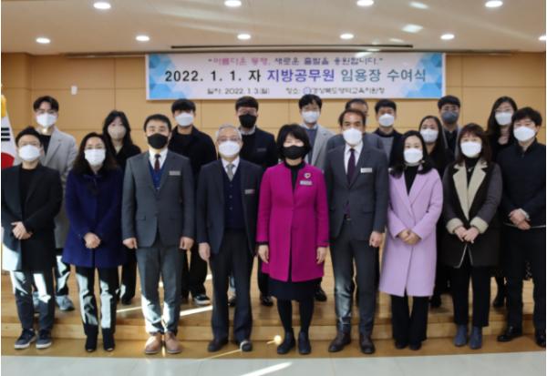 영덕교육지원청은 3일 중회실에서 2022년 1월 1일자 정기인사에 따른 임용장 수여식을 개최하였다.