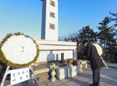 성주군은 임인년 새해를 맞이하여 3일 오전 8시 30분에 충혼탑에서 조국을 위해 헌신하신 순국선열 및 호국영령들의 위훈을 추념하는 참배로 범의 해 공식적인 성주호 항해의 닻을 올렸다.