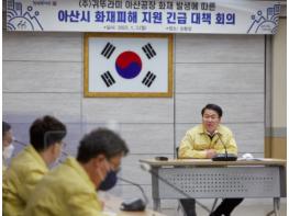 아산시가 3일 오전 국?소장 및 관련 부서 부서장이 참석한 가운데 탕정면 소재 귀뚜라미 아산공장 화재 발생에 따른 후속지원 대책 보고회를 개최했다.