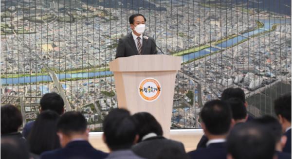 한편, 이날 시무식에 앞서 구인모 군수는 김태희 부군수와 함께 2022년 임인년 새해를 맞아 충혼탑 참배를 했다.