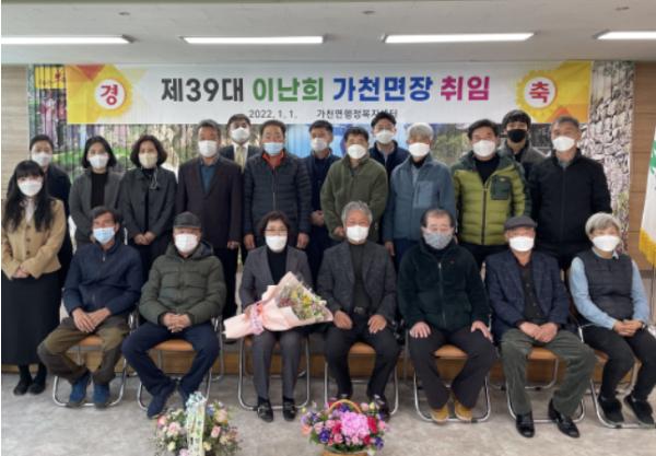신임 이난희 가천면장는 1991년 7월 9일 초전면에서 공직생활을 시작하여 탁월한 업무 추진력을 인정받아 왔으며, 2019년 4월 지방사회복지사무관으로 승진한 이후 주민복지과장, 가족지원과장을 역임하고 2022년 1월 1일자로 가천면장으로 취임하였다.