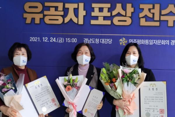 민주평화통일자문회의 거제시협의회는 지난 24일 경남도청 대강당에서 개최한 ‘2021년 평화 번영의 한반도 기반 조성’ 유공자 포상 전수식에 초청받아, 옥정희 前위원과 김미경 부회장이 의장(대통령) 표창, 윤해자여성분과위원장은 경남도지지사 표창을 수상했다.