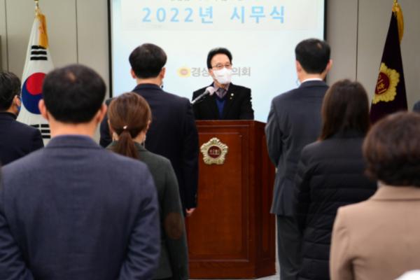 경남도의회는 3일 오전 10시 도의회 의정회의실에서 올 한해 힘찬 출발을 알리는 2022년 시무식을 개최했다.