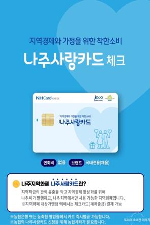 나주사랑카드는 전용 앱(CHAK)을 통해 구입·충전 할 수 있으며 스마트폰이 사용이 어려운 고령층을 위해 금융기관에서 카드 발급과 충전 서비스를 제공한다.