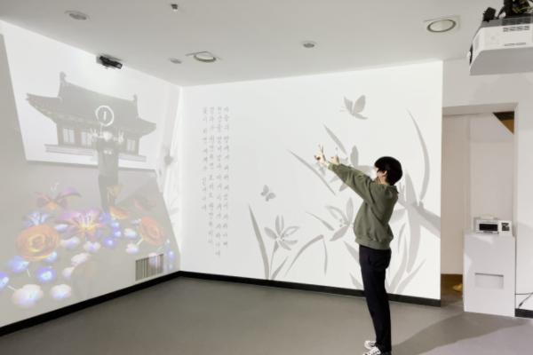 ‘두 번째 공간 : 몸으로 기록하다’는 체험자의 움직임이 인식되면 한자의 활자가 뒤집혀 한글로 표현된 내 모습을 확인할 수 있는 모션인식 인터랙션 체험존이다.