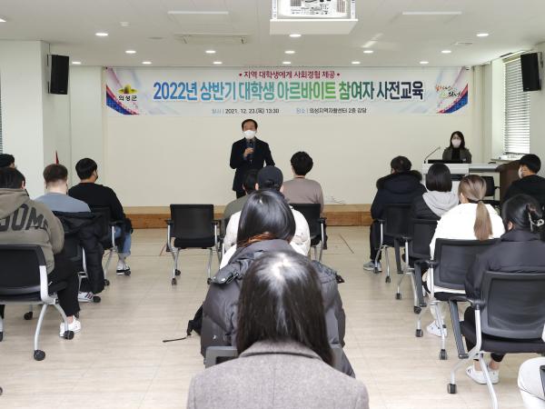대학생 아르바이트는 지역 대학생들에게 방학기간 동안 다양한 사회 경험을 제공하는 사업으로 의성군은 상·하반기 사업을 통해 총 120명을 지원한다. 상반기에는 총 60명의 참여자가 1개월씩 2개 기수에 나누어 사업에 참여하며 주 40시간 근무 및 시급 9,160원이 적용된다.