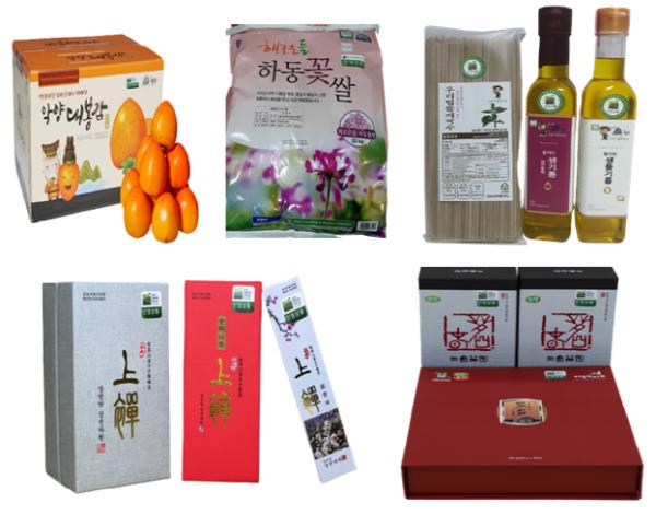 ‘해조은들 하동꽃쌀’은 고품질 브랜드 쌀로 밥맛 좋기로 유명하며, ‘상선암 우전’은 보성 스님이 직접 덖은 수제차로 제초제나 농약을 전혀 사용하지 않아 부드럽기로 유명하다.