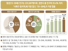 청년인구의 세대주는 8만9937명으로 전체의 38.6%를 차지했다. 연령대가 높을수록 세대주 인구 비중이 높아져 35~39세가 56.4%로 가장 많았다.
