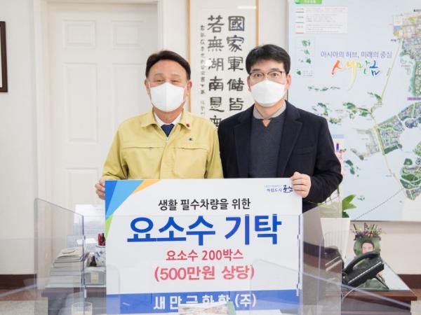 군산시는 오식도동에 소재한 새만금화학(주)이 요소수 200박스를 기탁했다고 4일 밝혔다.