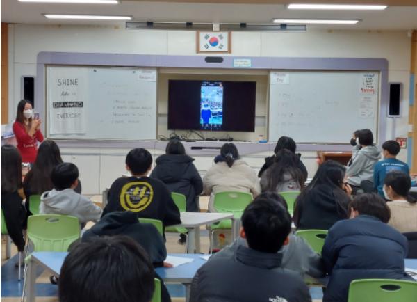 울진교육지원청 부구중학교에서 30일 중국 학생들과 실시간 온라인 국제교류 시간을 가졌다. 이번 교류는 경상북도교육청연구원 온라인 국제교류사업인 ‘한중 청소년 환경보호 블렌디드 캠프’의 일환으로 경상북도 내 총 6개의 학교가 선정되었으며 부구중학교는 중국 닝샤회족자치구의 중닝현 제3중학교(中?? 第三中?)와 국제교류를 하고 있다.