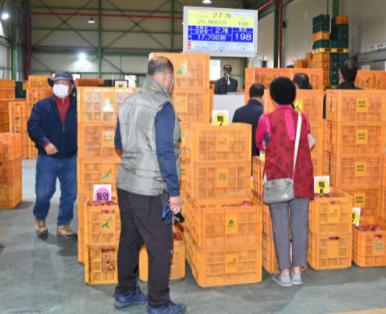 이날 첫 경매는 2021년에 수확하여 저장중인 청송사과 만생종 후지(富士)에 대한 경매로 진행되었으며, 물량 3,994상자/18kg를 경매하여 상자 당 평균가격 45,850원을 기록했다.