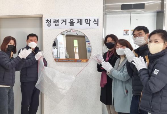 이에 애누리 직원들은 거울을 통해 자신의 모습을 바라보며 청렴한 업무 시행을 다짐하고자 청렴거울을 설치했다.