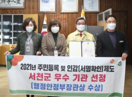 서천군이 행정안전부로부터 2021년 주민등록·인감(서명확인)업무 분야 우수지자체로 선정돼 행정안전부 장관상을 수상했다.