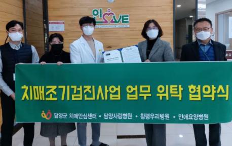 담양군은 지난 3일 품격있는 황혼을 위한 치매조기검진 사업 수행을 위해 담양 관내 3개 병원(담양사랑병원, 창평우리병원, 인애요양병원)과 업무협약 및 창평우리병원 협력의사 위촉식을 진행했다.