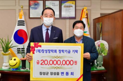 (재)장성장학회에 따르면, 지난해 장학금 기탁자는 총 78명이다. 기탁자 가운데 가장 큰 금액을 쾌척한 장성읍 변동희 씨는 경제 사정이 어려운 고향 학생들에게 배움의 기회를 열어주고 싶어 장학금을 마련했다. 변 씨는 장성읍 안평리 출신이다.