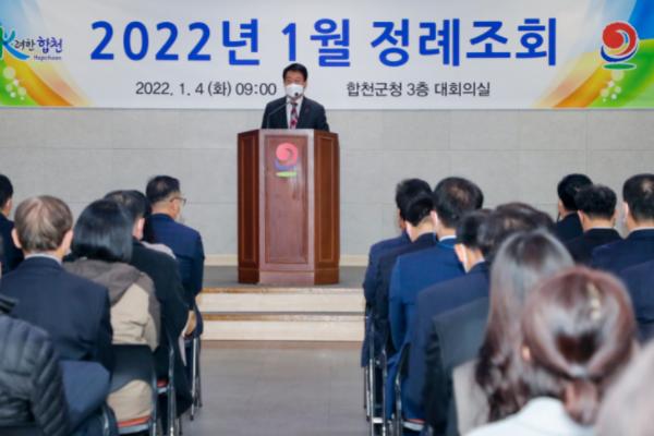 합천군은 4일 오전 9시 군청 대회의실에서 정례조회로 임인년 새해를 시작했다. 이번 정례조회는 방역패스를 도입해 코로나19 백신 접종을 완료한 공직자 및 일반인이 참석한 가운데 진행됐다.