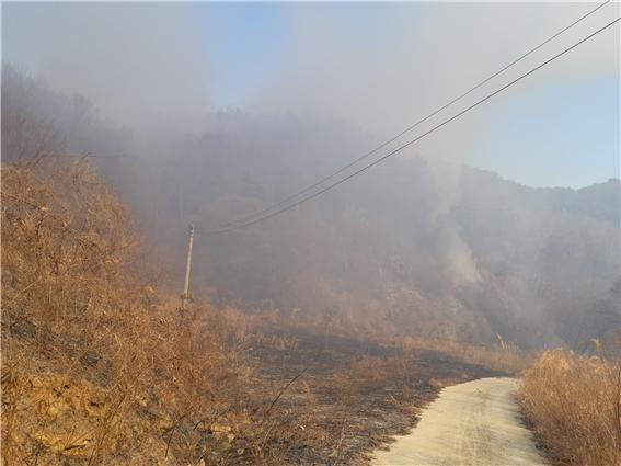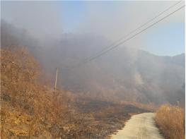 산불 현장의 기상상황은 북서풍 4m/s이며 산불 발생원인 및 피해면적은 현재 조사중에 있다.