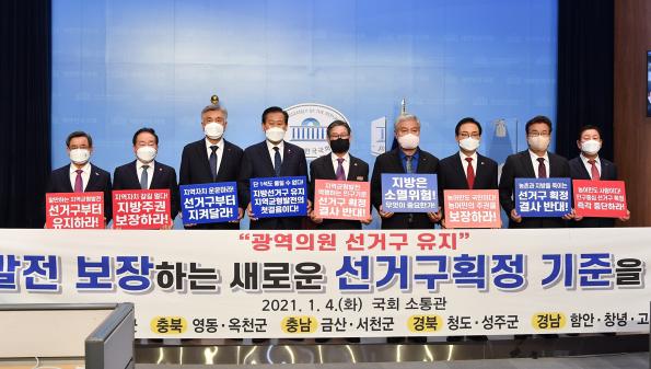 이들은 4일 오후 2시 30분 국회 소통관에서 기자회견을 열고 공동건의문 낭독, 13개 자치단체 입장설명, 구호 제창을 하며 광역의원 선거구 획정 개선을 위한 강한 의지를 드러냈다.