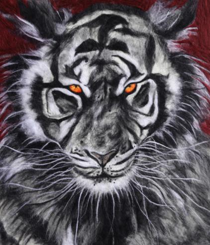 이 중 윤성윤 작가의 작품 ‘범 내려 온다’(제목·사진)는 양모를 이용해 호랑이를 니들 펠트로 표현했다.