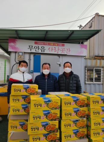 무안군은 지난 31일 무안읍 성남7리 양정남, 성남8리 최충의, 성남9리 박병환 이장이 사랑의 감귤 5kg 50박스를 무안읍 지역사회보장협의체에 전달했다고 밝혔다.