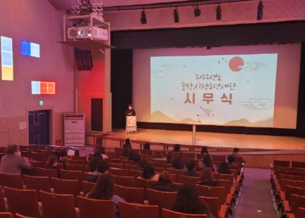 포항시청소년재단은 2022년 새해를 맞이해 ‘청소년의 행복한 미래를 열어가는 청소년재단’, ‘청소년과 같이·가치를 향상시키는 참여 행복 플랫폼 구축’이라는 목표와 전략으로 시무식을 개최했다.