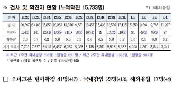 경상북도에서는 1. 4일 17개 시·군(시 10, 군 7)에서 코로나19 확진자 국내감염 97명이 신규 발생했다.