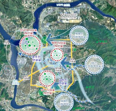 도시바람길숲 조성사업은 도시 외곽의 산림에서 생성되는 맑고 찬 공기를 도심으로 끌어들이고 미세먼지 등 대기오염물질과 오염된 도시 공기를 외부로 배출하는 대기순환을 통해 맑고 쾌적한 도시를 만드는 사업이다.